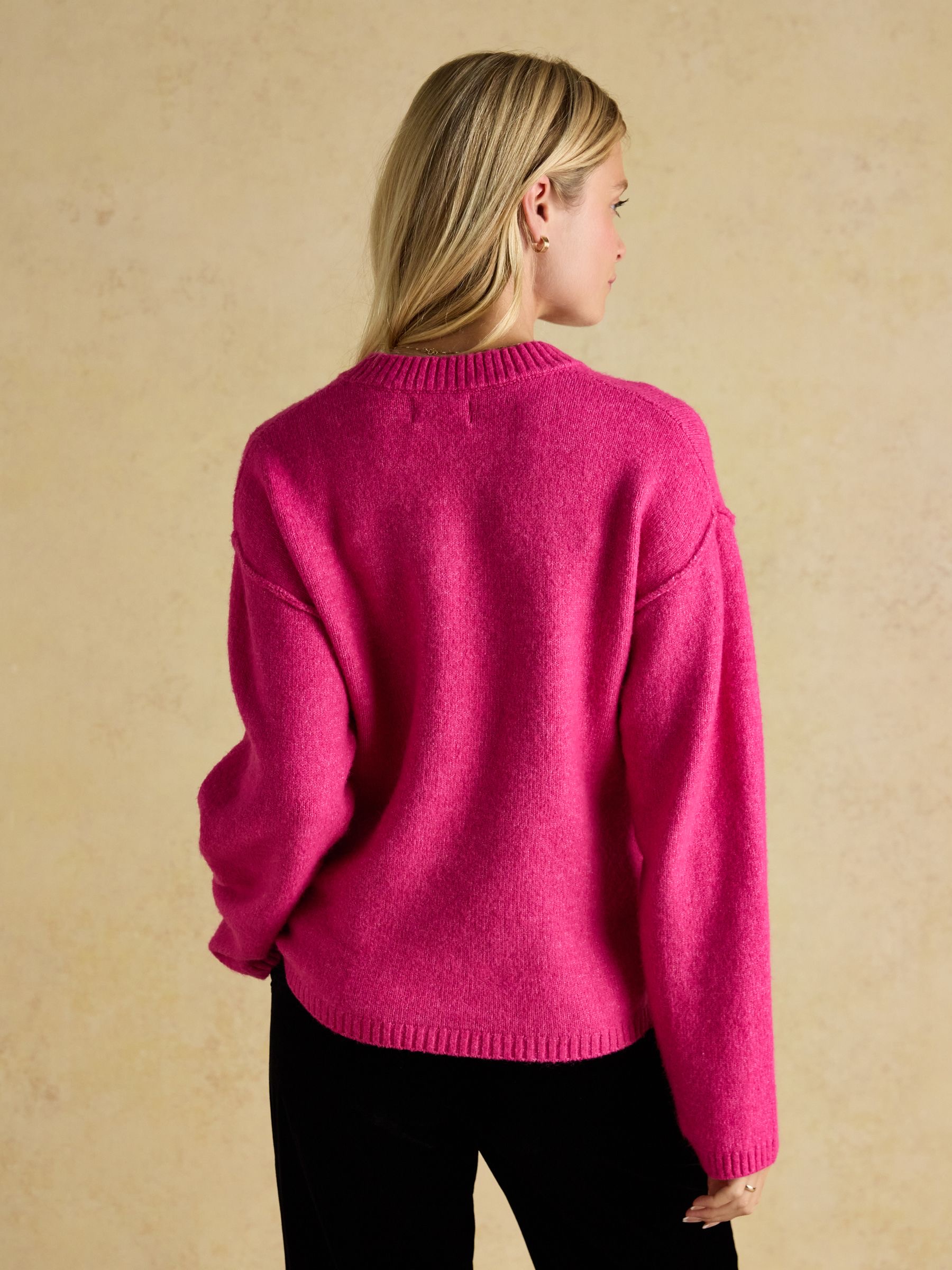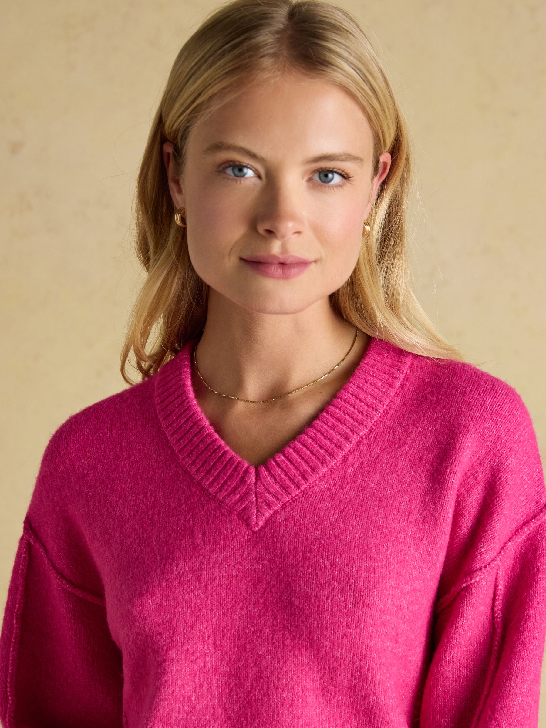 Hannah is a relaxed fit jumper that offers endless styling opportunities. Wear it alone, wear it tied around your shoulders or layer for the ultimate preppy finish. It’s crafted with a v-neckline, reverse seam detailing, long sleeves and is finished with ribbed trims. – V-neck – Long sleeves – Ribbed trims – Relaxed fit – Reverse seam detail on side of body and sleeve