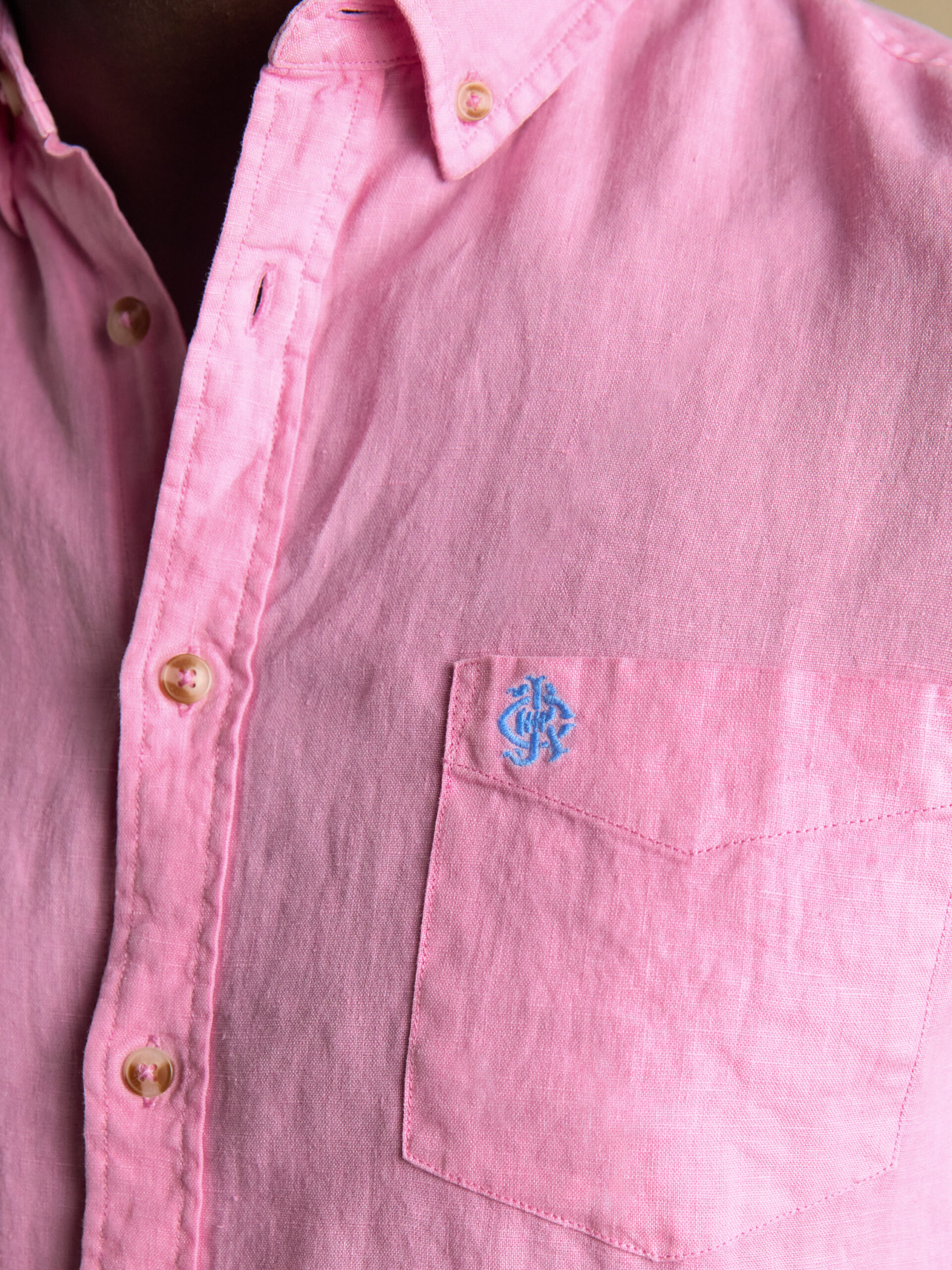 Bring a breath of fresh air to your summer wardrobe with our 100% linen shirt. This shirt is crafted from pure linen to ensure you stay cool and comfortable as the temperature rises. The classic fit offers a relaxed yet polished silhouette, while the box pleat on the back provides extra room for movement – ideal for active afternoons or coastal escapes. Featuring the signature Joules Rugby Club logo, it’s a subtle nod to heritage sport for the cool, preppy man.