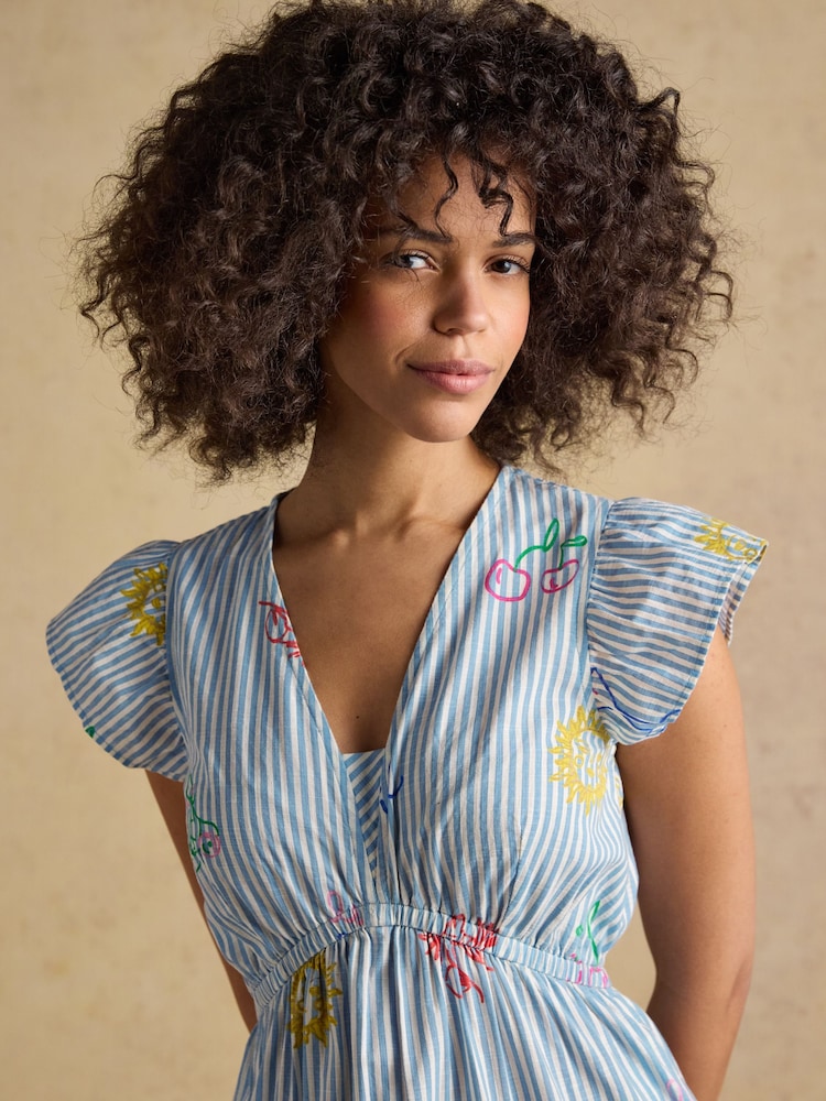 Capture the effortless charm of spring with our Winnie Frill Shoulder Maxi Dress, a piece that perfectly embodies the Joules spirit. Crafted from breathable cotton, this dress is an artful investment featuring a unique, hand-drawn print created by our in-house team. The contemporary maxi length is elevated by a tiered skirt that offers beautiful movement, while the delicate frill details at the shoulders add a touch of elegance. Whether you’re heading for a coastal stroll or a sun-drenched day out, the addition of practical side pockets ensures this dress is as functional as it is enchanting.