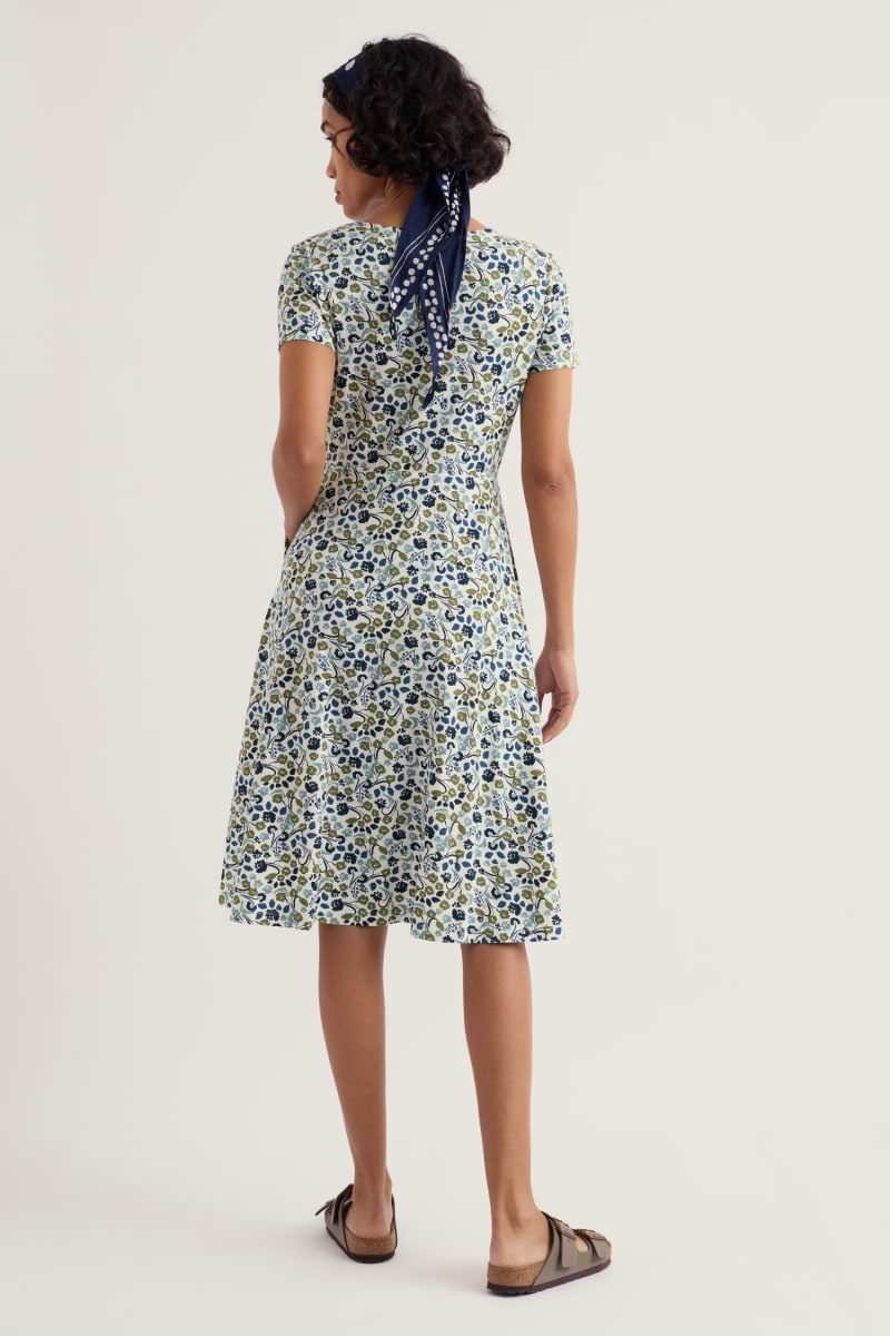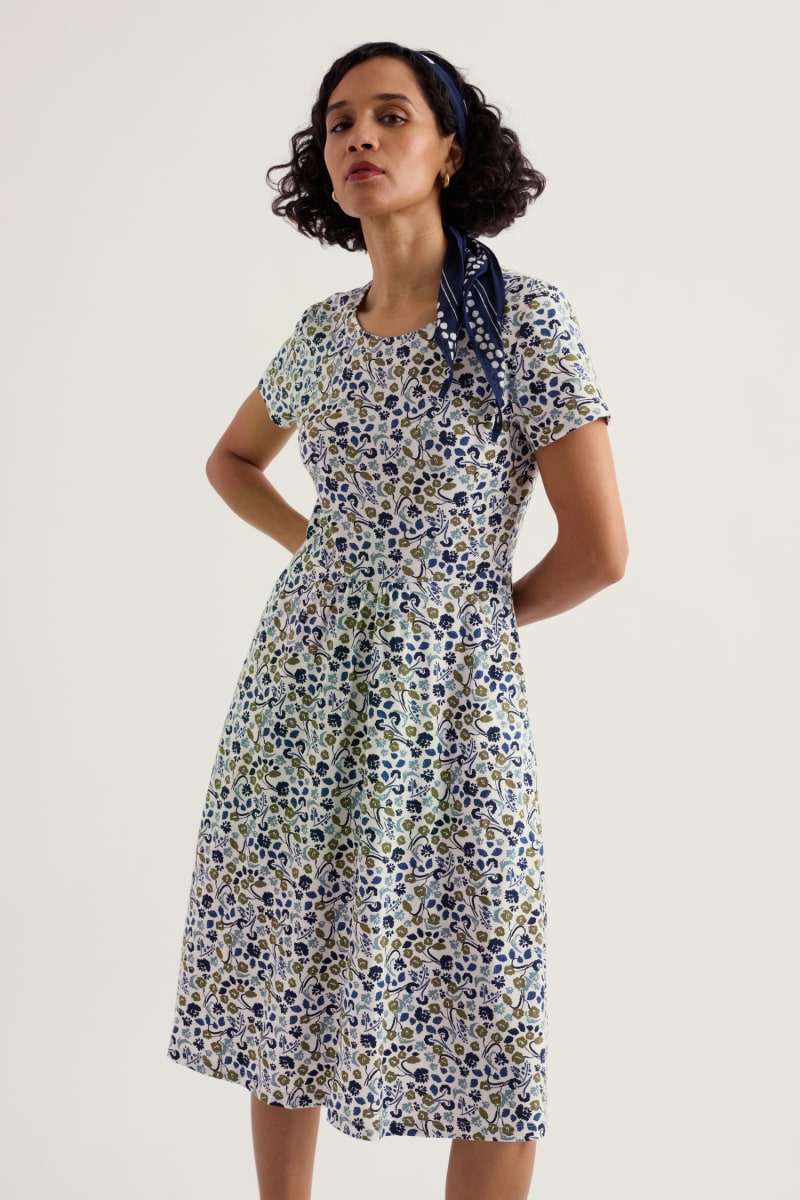 Made from soft and breathable organic cotton jersey with a touch of stretch for extra comfort. Falling just below the knee, it has an easy-to-wear, feminine fit-and-flare shape with gentle gathers at the waistband.