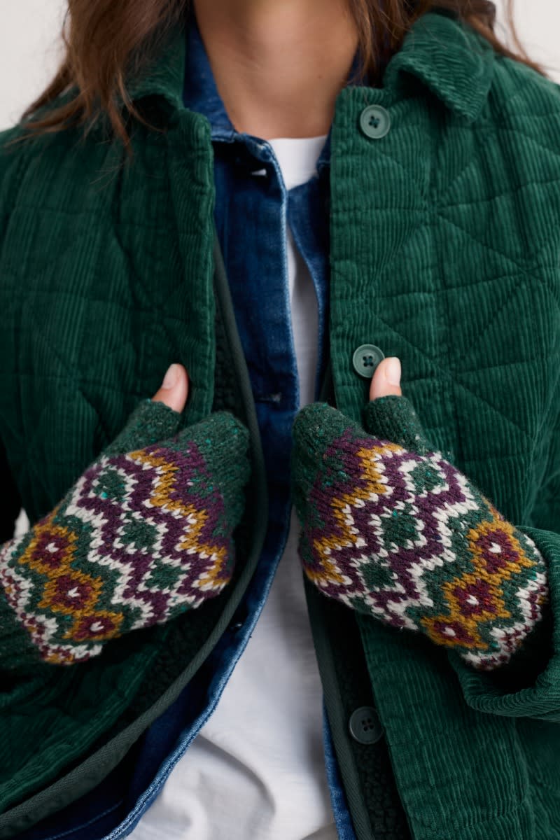 Our snug fingerless gloves are made from a soft and cosy blend of Merino, strong recycled fibres and yak wool. The 3-gauge knitted gloves will keep your hands lovely and warm on chilly days while leaving your fingers free. The traditional Fair Isle pattern brings a dash of detail to your winter outdoor wear.