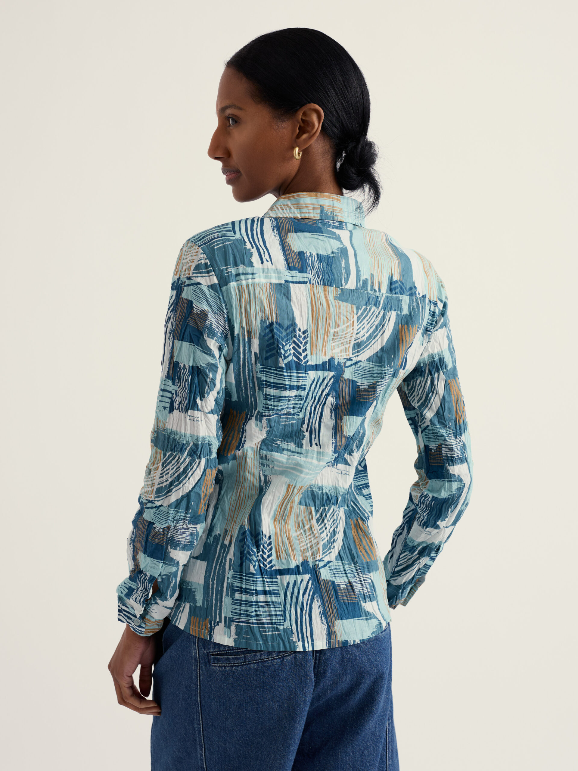 Our Larissa Shirt is a year-round favourite. Made from the softest organic cotton with a casual crinkled appearance, the beauty of this shirt is that it doesn’t need ironing – just wash and twist to keep the crinkle. This semi-fitted style is easy-to-style and comfortable, with long sleeves and button loops so you can roll up the cuffs to change your look. Each season, it showcases some of our most-loved prints, created by our talented textile designers.
