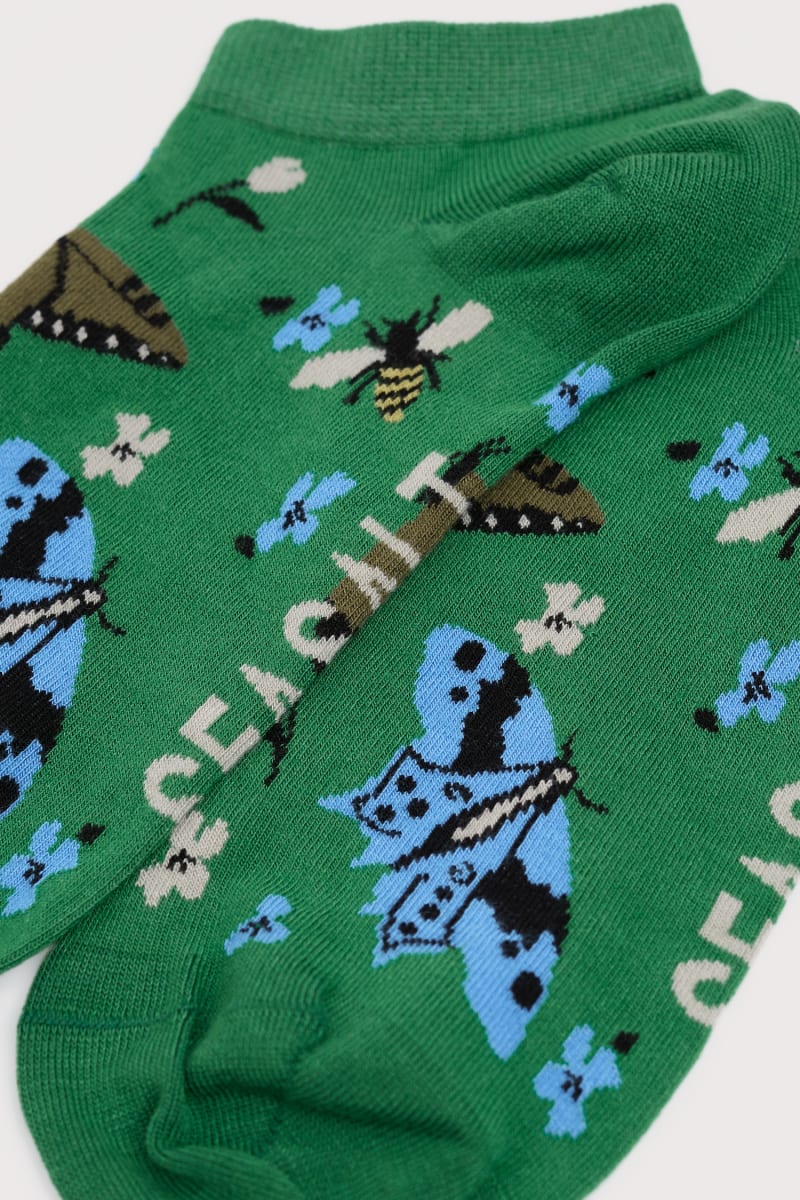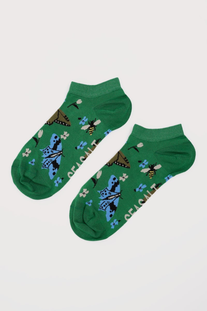 SEASALT WOMENS ARTY TRAINER SOCKS -WING FLOWER BRIGHT GREEN